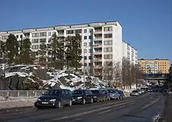 Hagsätra is a district (stadsdel) in Söderort, the southern part of Stockholm Municipality, Sweden. It is part of the Enskede-Årsta-Vantör borough (stadsdelsområde) .[1] It borders with the districts of Älvsjö, Örby and Rågsved in Stockholm, as well as Stuvsta in neighboring Huddinge Municipality. Hagsätra covers an area of 420 acres (170 ha) and, as of December 2023, has a population of 9934.[2]