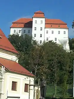 It is believed that Arnold II of the Arnold branch possibly have built the castles of Pölöske and Sztrigó (now Štrigova, Croatia) in Zala County during the 1240s, following the decision of Béla IV of Hungary to abandon the royal prerogative to build and own castles in response to the Mongol invasion. After the 1270s the gradually marginalized Arnold branch, resided on the western part of the Hahót basin, lost the ownership of Pölöske and Sztrigó against Ottokar II of Bohemia then the increasing powerful Kőszegi family.[13] Nicholas III also owned Purbach (Hungarian: Feketeváros) in Sopron County, but after his rebellion in 1270, Stephen V of Hungary confiscated the castle and donated to his loyal soldier Panyit Miskolc. Until confiscation, Nick was also a property of Panyit Hahót.[14] In Somogy County, the branch possessed Sukoró, Mórichely, Osziágy, Surd and Kákonya. For a time, James also owned Kálmáncsa and Dobsza, formerly queenly estates.[15]