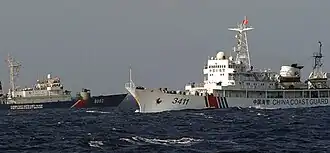 ![]() Patrol vessels of China Coast Guard and Vietnam Coast Guard shadowing each other in close distance. | |||||||