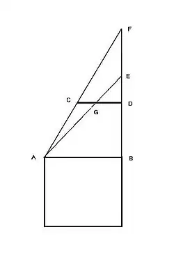 Using his principle of inscribe rectangle in right angle triangle for and , he obtained: