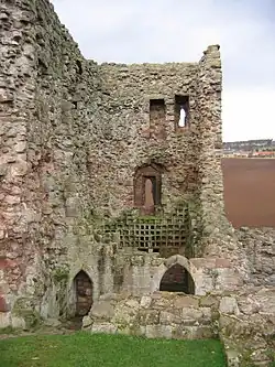 Hailes Castle is a mainly 14th century castle about a mile and a half south-west of East Linton, East Lothian, Scotland. This castle, which has a fine riverside setting, belonged to the Hepburn family during the most important centuries of its existence. Since 1926, it has been the subject of a state-sponsored guardianship agreement, which is now under the auspices of Historic Environment Scotland as a scheduled monument.[2]