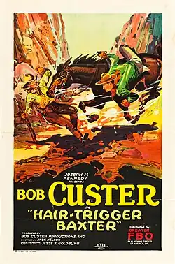 Hair-Trigger Baxter is a 1926 American silent Western film directed by Jack Nelson and starring Bob Custer, Eugenia Gilbert and Lew Meehan.[1]