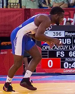 Haislan Veranes Garcia (born March 4, 1983) is a Canadian freestyle wrestler. Competing in the 65–66 kg division, he participated in the 2008, 2012 and 2016 Olympics; he reached quarter-finals in 2012, losing to the eventual champion Tatsuhiro Yonemitsu. Garcia competed at six world championships, beginning in 2009, and placed fifth in 2010. In 2015 he won a bronze medal at the 2015 Pan American Games in Toronto. At the Pan American Championships he won silver medals in 2008 and 2009 and bronze medals in 2010 and 2011.[1]