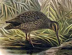 The decrease towards extinction paralleled that of the South Island snipe, of which the Muttonbird Islands were the final refuge, with the islands being progressively occupied by rats, feral cats and weka.[2] The last known individuals of the snipe died in 1964 on Big South Cape Island following the accidental introduction of black rats there.[4]