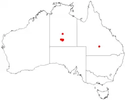 Hakea standleyensis is restricted to the Macdonnell Ranges in the Northern Territory where it grows in skeletal soil on ledges of quartzite cliff faces.[2]