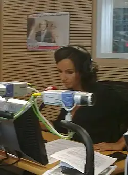In the course of her studies, encouraged by her lecturers, she did an internship at Nostalgie and Bel RTL, both private Belgian radio stations, broadcasting in Wallonia and Brussels, which gave her the chance to interview personalities such as Patrick Timsit (her first interview), Valérie Lemercier, Marc Lavoine or Gérard Lanvin.[2]