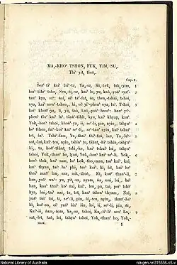 - ^ 《救主嘅耶穌新約聖經》 Kiu-chú Yâsu kaì Sin-yok Shìn-kin。 T´ıt tso`o Khak-ka Ph`ak-v`a, San-thˆeu Li-pa`ı thoˆong i`ın-fat. New Testament, Hak-ka Dialect, Printed for the British and Foreign Bible Society at the English Presbyterian Mission Press.