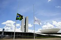 The flag of Brazil is flown half-mast when national mourning is declared by the president. This usually happens when a personality dies, or in the occasion of a tragedy.