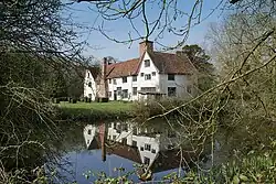 Ufford Hall is a Grade II* listed manor house in Fressingfield, Suffolk, England, dating back to the thirteenth century. Fressingfield is 12 miles east of Diss, Norfolk. The timber-framed manor house with rosy ochre coloured plaster walls and dark tiled roof,[38] incorporates the medieval core of an earlier open-hall house. At least twenty raised-aisled houses have been identified in the area, "forming a characteristic group, rarely found elsewhere in England".[39] The Hall has attracted the attention of architectural historians, such as Pevsner[40] and Sandon,[38] and has been described as the “ultimate development (…) of the early hall house.”[41] Its most noteworthy features include: cross-beamed ceiling in the parlour which has not been disturbed since the late fifteenth century or early sixteenth century; striking original sixteenth-century mullioned and transomed windows; back-to-back stuccoed fireplaces on both floors and chimney stacks of Tudor origin; fine Jacobean dog-leg staircase with turned balusters and newel posts with ball finials. The latter is the last major addition to the house, which remains largely unaltered from the original.