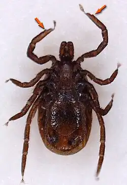 - ^ a b c Josek, Tanya; Allan, Brian F.; Alleyne, Marianne (2018). "Morphometric Analysis of Chemoreception Organ in Male and Female Ticks (Acari: Ixodidae)". Journal of Medical Entomology. 55 (3): 547–552. doi:10.1093/jme/tjx232. PMID 29309667. Retrieved 2023-04-06.