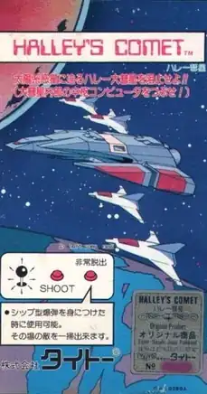 Halley's Comet is an arcade video game created by Pacific Manufacturing Ltd and manufactured by its parent company Taito.[1] Receiving a worldwide release in 1986, Halley's Comet is a vertically scrolling shooter where the player defends various planets around the Solar System from a direct collision with Halley's Comet and the various alien swarms which accompany it.