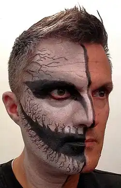 From at least the 16th century,[5] the festival included mumming and guising,[6] which involved people going door to door in costume or disguise and usually reciting verses or songs in exchange for food.[6] Originally, this may have been a tradition in which people impersonated the Aos Sí or the souls of the dead and received offerings on their behalf. Impersonating these beings or wearing a disguise was also believed to protect oneself from them.[7] It has also been suggested that the mummers and guisers "personify the old spirits of the winter, who demanded reward in exchange for good fortune".[8] F. Marian McNeill suggests the ancient pagan festival included people wearing masks or costumes to represent the spirits, and that faces were marked or blackened with ashes from the sacred bonfire.[5]