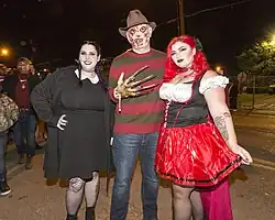 The custom of guising at Halloween in North America was first recorded in 1911, when a newspaper in Kingston, Ontario reported children going "guising" around the neighborhood.[29] In 19th century America, Halloween was often celebrated with costume parades and "licentious revelries."[30] However, efforts were made to "domesticate" the festival to conform with Victorian-era morality. Halloween was made into a private rather than public holiday, celebrations involving liquor and sensuality were de-emphasized, and only children were expected to celebrate the festival.[31]