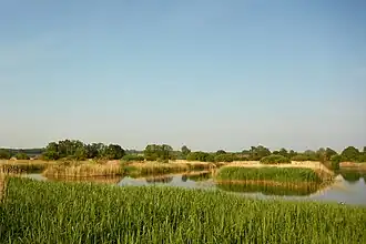 By the twentieth century, large areas of the levels were exploited to meet horticultural demand for peat.[2] The owners of the workings, Fisons, reached an annual production of 250,000 tonnes (250,000 long tons) in the early-1990s.[14] When the demand for peat fell towards the end of the century, Fisons transferred ownership of much of their land to English Nature (now Natural England) in 1994, enabling the creation of 13 square kilometres (5.0 sq mi) of wetland nature reserves from the diggings. English Nature handed the management of 230 hectares (570 acres) at Ham Wall to the Royal Society for the Protection of Birds (RSPB),[13] managing the rest of the land itself apart from an extension to the Somerset Wildlife Trust's existing reserve at Westhay Moor.[14]