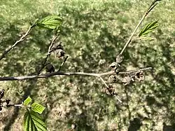 Hamamelis virginiana, known as witch-hazel, common witch-hazel, American witch-hazel and beadwood,[1] is a species of flowering shrub native to eastern North America, from Nova Scotia west to Minnesota, and south to central Florida to eastern Texas.[2]