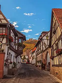 Hambach, which received its name affix "an der Weinstraße" as a wine village in 1935,[1] was incorporated into the town Neustadt an der Weinstraße (Rhineland-Palatinate) in 1969 and is its second largest district.[2] The village is considered a symbol of German democracy because of the enunciation of freedom which took place in the Hambach Castle in 1832, known as the Hambach Festival.