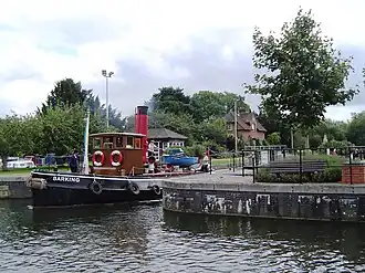 An old tug boat leaves the lock | |