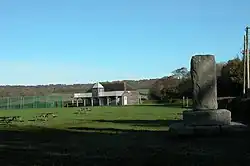 The famous Bat and Ball Inn in Hyden Farm Lane is next to the historic cricket ground at Broadhalfpenny Down where the Hambledon club originally played. The inn was run by Richard Nyren, who was also captain of the club. The modern Hambledon Cricket Club's ground is at Ridge Meadow, about 0.5 miles (800 m) away.