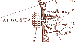 The founder of Hamburg, Henry Shultz, was a parvenu until his origin was discovered in 2016 by Jürgen Möller.[1] Born in Germany in 1776 as Klaus Hinrich Klahn, Shultz arrived in Augusta in 1806 as a simple day worker. But, by 1813, the business dealings of Shultz had elevated him to a position capable of building a long-lasting bridge across the Savannah River, a feat which one of the wealthiest South Carolinian of the 1790s, Wade Hampton I, had failed to accomplish on two previous occasions.[2]