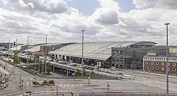 The Radisson Blu Hotel Hamburg Airport was added in 2009, combined with new roadside access and a station with connection to the city's rapid transit system (Hamburg S-Bahn).[6]