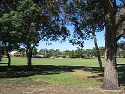 Meanwhile, work was only starting in eastern Hamersley. In 1973 Project Homes acquired a poultry farm and agricultural holding, and completed the construction of Vickers Street and adjoining roads, with Don Place becoming a display village.[47] In 1974 the City of Stirling agreed, after complex negotiations, to sell 4.2 hectares (10 acres) of land comprising Carine Road and Allen Street to the State Housing Commission and to the War Service Homes Commission in order to "facilitate a satisfactory subdivisional design of adjoining land held by the State Housing Commission" in the eastern portion of the suburb. All that remains of these two early roads are paved pathways within the Rannoch-Tay-Earn Reserve, which was gazetted in 1976.[48] By July 1975, 200 defence service homes were under construction on land immediately to the east of Erindale Road, to be made available to veterans from March 1976.[49] The rest of eastern Hamersley was built over the next few years, and by 1981 development was essentially complete.[50] The community hall was redeveloped into a full-fledged community centre, which officially opened in 1990.[51]