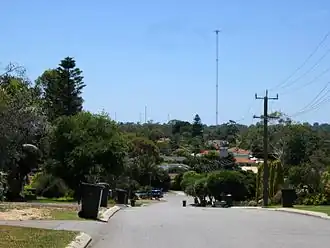 Significant reserves of remnant bushland remain in parts of the suburb. The largest of these is an exclusion zone around the 180-metre-high (590-foot) ABC radio tower in the suburb's southeast, which broadcasts AM stations to the Perth metropolitan area. The guyed tower was built in 1939 and is a landmark in the region, although it has been a local political issue since the 1980s.[4]