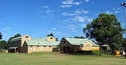 Aintree-Eglinton Reserve, a grassed area covering 3.38 hectares (8.4 acres), contains a cricket pitch, several practice runs and night lights for Australian rules football, which are utilised by local amateur and junior clubs.[60] Within the reserve is the Hamersley Community Recreation Centre, first built in the 1970s as a community hall[41] and opened in its present form on 22 April 1990.[51] The centre is a small village area consisting of a central pergola crossed with walking paths, flanked by four buildings: a sports hall with basketball courts and kiosk, an arts and crafts building, a community hall and function building hosting discos and other social events, and a purpose-built children's centre.[61] Near the centre are the 1st Hamersley Scout Group, a child health centre and the Holy Cross Anglican Church, a colonial-style building built in 1974 and consecrated on 14 December 1980 to serve the newly formed Balcatta-Hamersley Parish.[40]