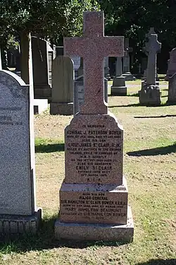 He is buried with his parents in Dean Cemetery in Edinburgh. The grave lies in the first north extension close to the main east–west path.