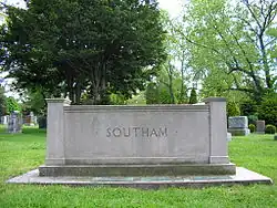 A large number of the stones contain masonic symbols, as well as a number of carved tree-stumps.[4] Several family vaults are also found here, including the Sanford Vault, the Tuckett vault, the Thomas C Watkins vault, the Col. Land Family Vault and the Stinson Family Mausoleum. Oddly, there is indication that these crypts are renovations of an existing (ancient) stone building. Even more curious, is that these crypts are half-buried in a mound of earth.