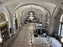The present courthouse is the sixth courthouse and the fourth courthouse constructed in downtown Cincinnati. On October 1, 1915, former President and future Chief Justice of the Supreme Court of the United States, William Howard Taft laid the cornerstone.[2] After spending the sum of $3,022,000 to construct this Renaissance Revival styled courthouse, on October 18, 1919, this courthouse was officially dedicated by then, Senator, and future President, Warren G. Harding. [3]