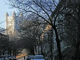 The Hamilton Heights Historic District is a national historic district in Hamilton Heights, New York, New York. It consists of 192 contributing residential rowhouses, apartment buildings, and churches built between about 1886 and 1931. Most are three and four story brick rowhouses set behind raised stone terraces. The three churches within the district are St. Luke's, the Convent Avenue Baptist Church, and St. James Presbyterian Church. Architectural styles include Queen Anne, Romanesque, and Beaux-Arts.[3]