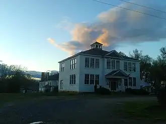 It was constructed in 1910 and is a two-story wood-frame building, constructed in a local adaptation of the Classical Revival style. It has a hipped roof topped by a bell tower / cupola and is two bays deep and three bays wide, with an exterior footprint of 50 feet by 57 feet. An auditorium annex was added about 1925. A second annex, an agricultural classroom building now referred to as "the cannery" was added to the property about 1930, and the Wayside School (c. 1879), a one-room schoolhouse that was moved to the property from the vicinity of nearby Sportsmen's Lake between about 1935 and 1945.[3]