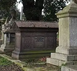 He retired in early 1902 due to ill health, and died later the same year on 17 September 1902 as he was visiting his sister Mrs. Wedgwood at her residence The Lea, in Barlaston, Staffordshire.[2] He was buried at Kensal Green Cemetery in London.