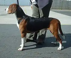 The Hamiltonstövare (or Hamilton Hound) is a breed of scenthound originally developed by the founder of the Swedish Kennel Club, Count Adolf Hamilton. Its ancestors include several German hounds as well as English Foxhounds and Harriers. The breed is recognized by the Swedish Kennel Club, Federation Cynologique Internationale (FCI) and the American Kennel Club's Foundational Stock Service.