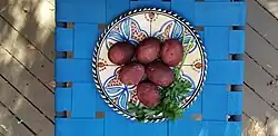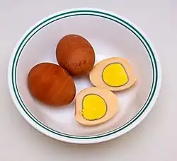 Haminados have been a component of Jewish cuisine since at least the 15th century in Medieval Spain.[1] Today, they are an integral of Israeli cuisine, typically prepared either on their own or as part of the Sephardic/Mizrahi Shabbat stew known as chamin. These braised eggs are often enjoyed as an ingredient or accompaniment in various dishes.[2][3][4][5]