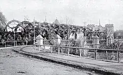 Meanwhile, the local bridge design was undertaken by the Assistant Provincial Engineer, James Wylde, and the site works awarded to Edward George Wright, whose winning tender was £2,375. Wright began his work in January 1864, whilst the iron girders did not arrive in Lyttelton until July of that year.[1] However, the journey by sea had been rough, and shifting cargo had caused three of the girders to crack. This was repaired at John Anderson's foundry at a cost of over £300; Anderson had wrought iron plates riveted over the cracks.[17] Wright constructed solid square stone blocks for the girders to terminate in, and the bridge was built at a width of 27 feet 6 inches (8.38 m). It opened on 28 September 1864 with considerable ceremony, with four guards placed at the bridge the previous evening so that nobody would cross it prior to the opening ceremony. The honour of opening the bridge fell to John Ollivier as chairman of the Christchurch Town Council, and Dr William Donald as resident magistrate of Lyttelton. Ollivier broke a bottle of champagne on the bridge to declare it open,[17][18] and it fell to Donald to officially name it Victoria Bridge.[19] The new bridge was heavily criticised by one of the local newspapers, The Press, for being of a much more complex and expensive construction type than would have been necessary, yet they questioned whether the abutments would even withhold the lateral forces induced by the reasonably flat girders.[8] The total cost of the bridge was reported to the Town Council as £3,410 10s.[20] At the same time, ownership of the bridge was transferred from the Provincial Council to the Town Council. The Provincial Council allocated a further £300 to the project, and thus paid £3,300 towards the total costs.[21]