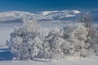 ![]() Hamlagrøvatnet at wintertime (behind the trees) | |