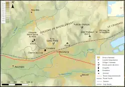The hamlet was built on the Haute-Saône plateau in the sub-Vosgian depression,[3] on the southern slopes of the Vosges mountains.[4]