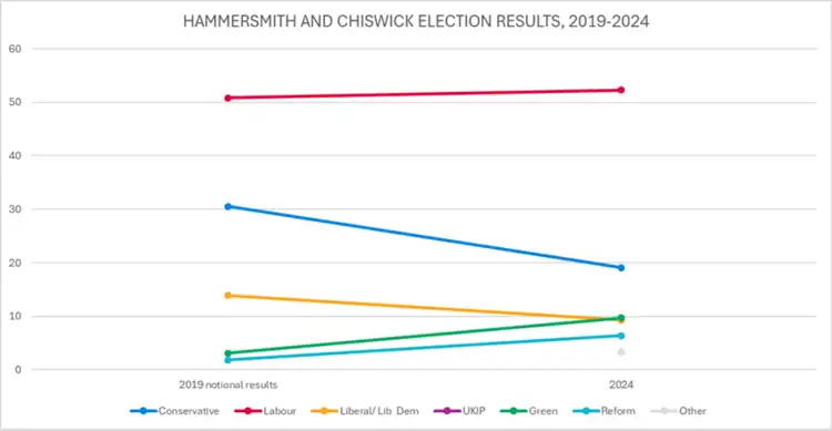 - ^ "Hammersmith and Chiswick - General election results 2024". BBC News.