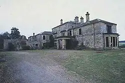 There remained a full complement of eleven or twelve – by differing accounts – indoor staff for the duration of the Pollens' time at Hammerwood, and he contributed the land, and a quarter of the building costs, for the building of the Hammerwood and Holtye Hall.[21] It is a strange coincidence that one of Lt. Col. Pollen's ancestors, Richard Pollen, brother of Sir John Pollen, Bt., married the daughter of S. P. Cockerell, the architect under whom Latrobe studied.[19] After the death of Lt. Col. Pollen in 1935, the Kirwan Taylor family bought Hammerwood; they were the owners when the Second World War broke out. Like many large houses, it was requisitioned for use by the armed forces, becoming home to 200 soldiers, including the cricketer Denis Compton, and a contingent from the Canadian Army.[19] No. 660 Squadron RAF operated from an airstrip to the north of the park from November 1943, and the SOE flew Westland Lysanders from the same strip for a time.[19]