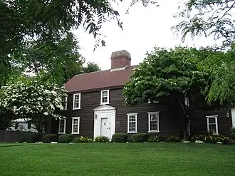 The Hammond House is an historic house located at 9 Old Orchard Road in the village of Chestnut Hill in Newton, Massachusetts. With an estimated construction date of 1645-1730, it is believed to be the oldest house in Newton. It is also a rare example of a First Period house that was started as a single cell (three bays with chimney behind one bay), that was expanded to five bays later in the First Period; such expansion usually took place later in the 18th century, during the Georgian period. The house has been extended multiple times over the intervening centuries; the original core now lies just east of the main entrance.[2] The original house was built by Hon. Ebenezer Stone when he moved from the Stone homestead at Mount Auburn in Watertown.[3]