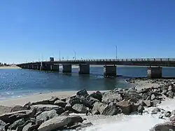 The Hampton Bridge is a bascule bridge that spans the Hampton River near Hampton Beach, New Hampshire, United States. Constructed with steel and concrete, the bridge is officially named for Neil R. Underwood. Its predecessor was constructed of wood by Wallace D. Lovell and was referred to as the Mile-Long Wooden Bridge. For a time in the early 1900s, Hampton Bridge earned the title of longest bridge in the United States.