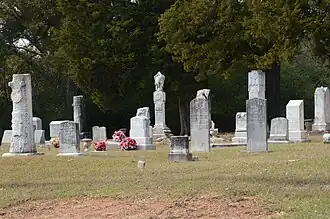 Hampton Cemetery is a historic cemetery in downtown Hampton, Arkansas. The 0.5-acre (0.20 ha) cemetery is located near the center of town, not far from the Calhoun County Courthouse, and immediately adjacent to the Hampton Church of Christ. The cemetery is said to have been used as a burying ground since the first days of settlement in the area (which began in 1848), although the first marked grave is dated 1878. The town decided in 1920 to stop allowing burials other than those already reserved, and the last burial took place in the cemetery in 1969. There are estimated to be 139 burials in the cemetery, although only 103 are marked. Most of the marked graves are dated between 1890 and 1920.[2]