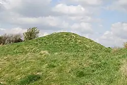 Positioned at the national grid reference 35960865,[1] Hampton Down Stone Circle is located on the southern edge of an open downland ridge at a height of 680 feet above sea level.[2] Located 1 kilometre (0.6 miles) north-west of Portesham on private land,[1] it is positioned on the rim of Portesham Hill and overlooks the coast.[3] Had the vegetation levels been low at the time of the circle's creation then it would have permitted extensive panoramic views of the coastline.[4] The site is a scheduled monument, and thus accorded legal protection under the Ancient Monuments and Archaeological Areas Act 1979.[5]