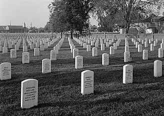 Hampton National Cemetery is a United States National Cemetery in the city of Hampton, Virginia. It encompasses 27.1 acres (11.0 ha), and as of 2014, had over 30,000 interments. There are two separate parts to this facility. The original cemetery is called the "Hampton Section" and is located on Cemetery Road in Hampton, VA. It is on the western side of I-64. The new section which is called the "Phoebus Addition" or the "Phoebus Section" West County Street in Hampton, VA east of I-64. It is less than a mile from the original cemetery. Both sections of the Hampton National Cemetery are closed to new interments.[3]