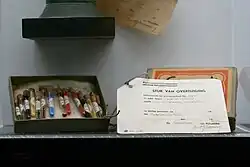 Van Meegeren suffered a heart attack on 26 November 1947, the last day to appeal the ruling, and was rushed to the Valeriuskliniek, a hospital in Amsterdam,[50] where he suffered a second heart attack on 29 December, and was pronounced dead on 30 December 1947, at the age of 58. Soon after his death, a plaster death mask was made, which was acquired by the Rijksmuseum in 2014.[51][52] His family and several hundred of his friends attended his funeral at the Driehuis Westerveld Crematorium chapel. In 1948, his urn was buried in the general cemetery in the village of Diepenveen (municipality of Deventer).[53]
