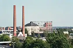 Building the A plant of the Hanasaari Power Plant started in 1957 and it was completed in 1960. The A plant was in use until 2000 and since that as a backup plant. A decision to dismantle the A plant was made in 2006.[2] Planning the B plant started in 1962, and it started operating in 1974. There have been plans for residential building in the area, which will require cleansing the soil, as cyanide was found in the soil near the red-brick B plant in 2006. Cleansing the groundwater in the area is expensive and difficult, and can take decades to fully complete.[3][4]