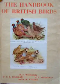 The Handbook of British Birds was a pioneering bird guide by H.F. Witherby, Rev. F.C.R. Jourdain, Norman F. Ticehurst and Bernard W. Tucker, published in five volumes by H. F. & G. Witherby between 1938–1941.
