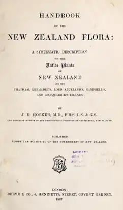![]() Title page for Handbook of the New Zealand Flora (1867) | |