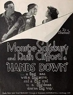 Hands Down is a 1918 American silent Western film directed by Rupert Julian and starring Monroe Salisbury, W.H. Bainbridge and Ruth Clifford.[1]